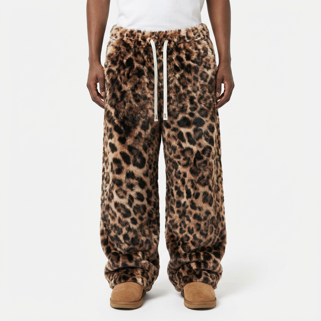 These wild leopard print pants bring serious heat to your winter wardrobe with ultra-soft rabbit hair fabric. The loose wide-leg fit ensures you stay comfortable while nailing that effortless hip-hop aesthetic. Whether you're hitting the streets or lounging at home, these fleece trousers offer the perfect blend of cozy and cool. Embrace the Y2K vibe with a bold pattern that keeps you toasted even on the chilliest days.